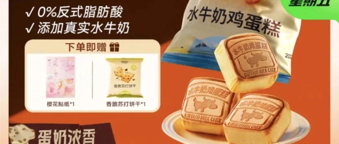 2】领券后,9.9元到手沪上阿姨水牛奶鸡蛋糕6个+饼干1包