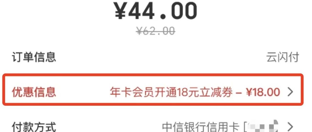相当于仅需44元就能开通云闪付62VIP会员,运气好的话甚至可以0开会员,但如果领到的是6元券的话就直接无视?