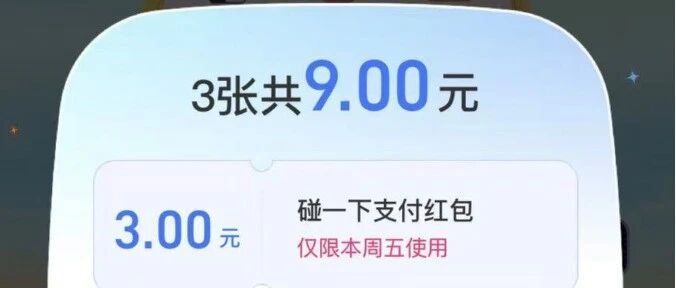 支付宝APP搜"支付有礼",领碰一碰红包,今天反馈中奖率很高,6~15元红包。