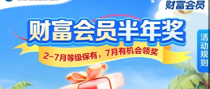 建行2-7月财富会员等级不降低,且7月财富会员等级在白银及以上的客户抽奖,保底15元。